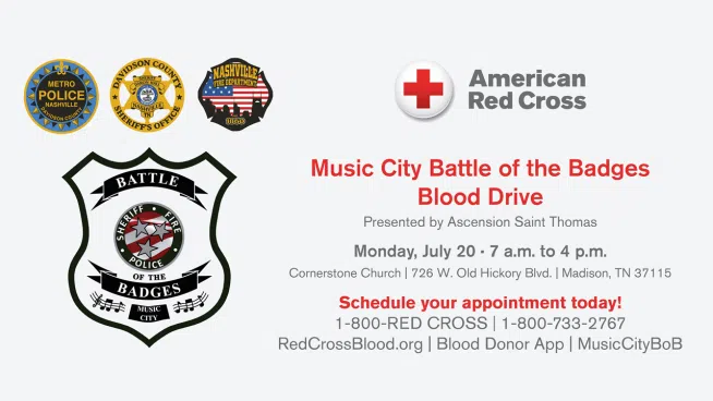 NASHVILLE, Tenn. (July 10, 2020) - The Metropolitan Nashville Police Department, Davidson County Sheriff's Office and Nashville Fire Department are teaming up with the American Red Cross, Ascension Sa...